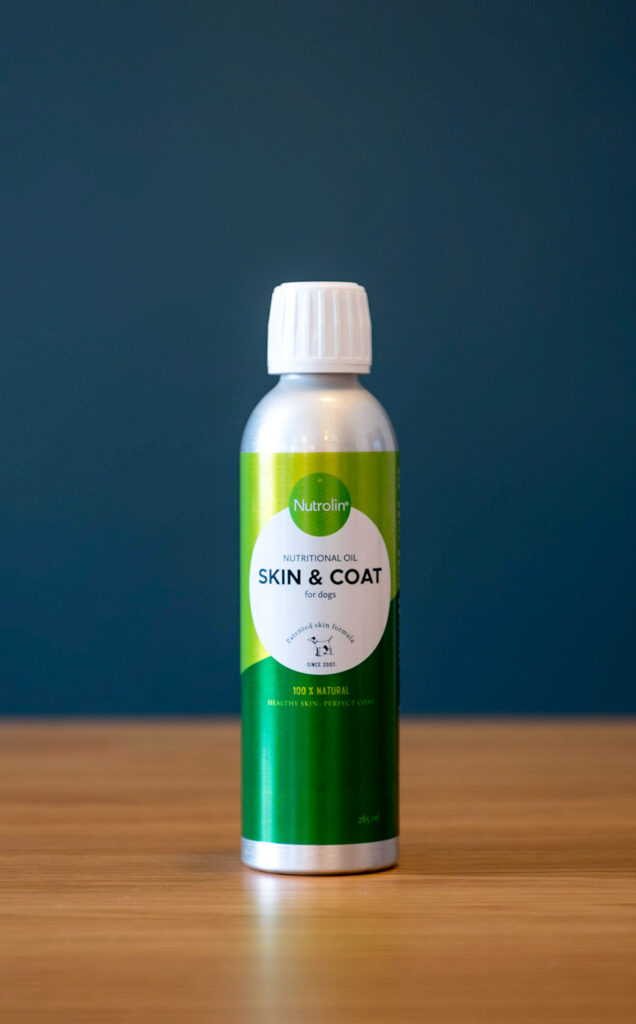 - Nutrolin® SKIN & COAT ger hjälp vid pälsfällning och dessutom gör näringsoljan den nya pälsen glansig och färgen djup. Produkten passar alla hundar oberoende hundens ålder och hurdan päls hunden har. SKIN & COAT ges tillsammans med hundens mat och hundarna brukar verkligen gilla smaken av oljan.